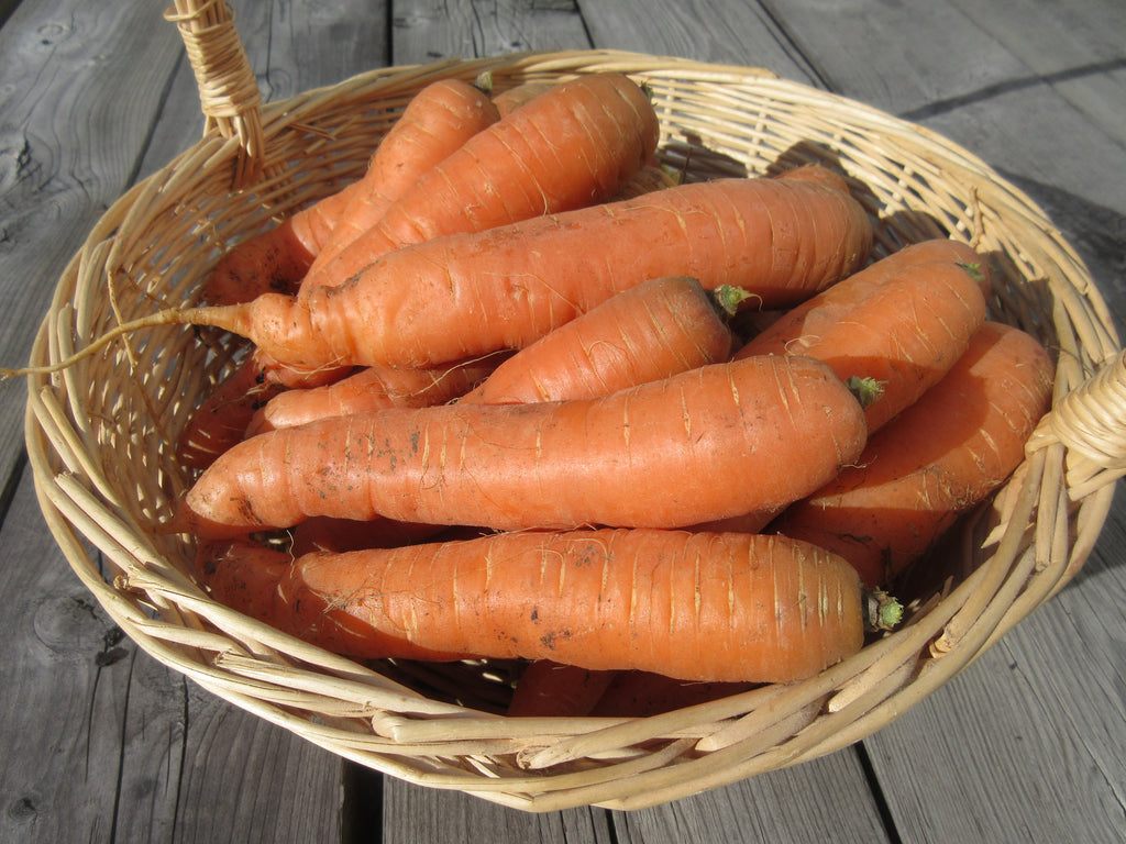 Origine de la semence: Les semences sont produites à la ferme et sont de la première génération sélectionnée ici. Nous nous sommes procuré les semences mères de cette carotte chez High Mowing Seeds.